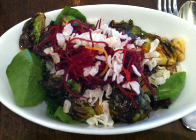 The Bistro menu is small (literally…the card could fit in my back pocket), and divided into price categories ranging from $8 to $34. I asked the server if he would mind going through the gluten-free options with me and he preferred I ask him specifically about the dishes that interested me. I was interested in everything. He seemed fairly knowledgeable, but proceeded with caution, looking at me wearily after every “you can’t eat that”, as if I my head might implode after too many disappointments. To his relief, we managed to find some gluten-free options that appealed. We started off easy with a cheese and charcuterie plate that arrived with three sad looking toast corners on the side, one for each wheat-bellied guest. Sensing the table’s dissatisfaction the server quickly supplemented with more toast. We slowly nibbled, waiting an uncomfortable amount of time before we saw our server again to place our food order. He asked my three dining partners if they would like homemade parker rolls with bits of bacon baked into the center, as if any gluten and pork-eating American would say “no” to that!